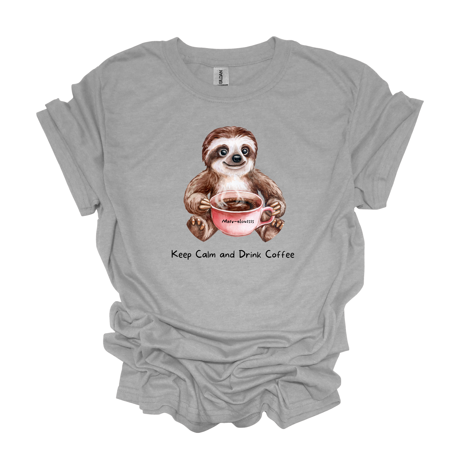 Experience the perfect blend of comfort and style with the Gilden Mav-elousss Sloth and Coffee T-shirt. Crafted from premium cotton, this unisex tee offers a luxurious softness that feels gentle against your skin all day long. Its custom labeling adds a unique touch, distinguishing it from ordinary shirts and making it a standout piece in your wardrobe. Designed with durable construction, it maintains its softness and shape even after multiple washes. Whether you're lounging at home or out with friends, this shirt makes a cozy, stylish statement that sparks conversation and celebrates your love for sloths and coffee.