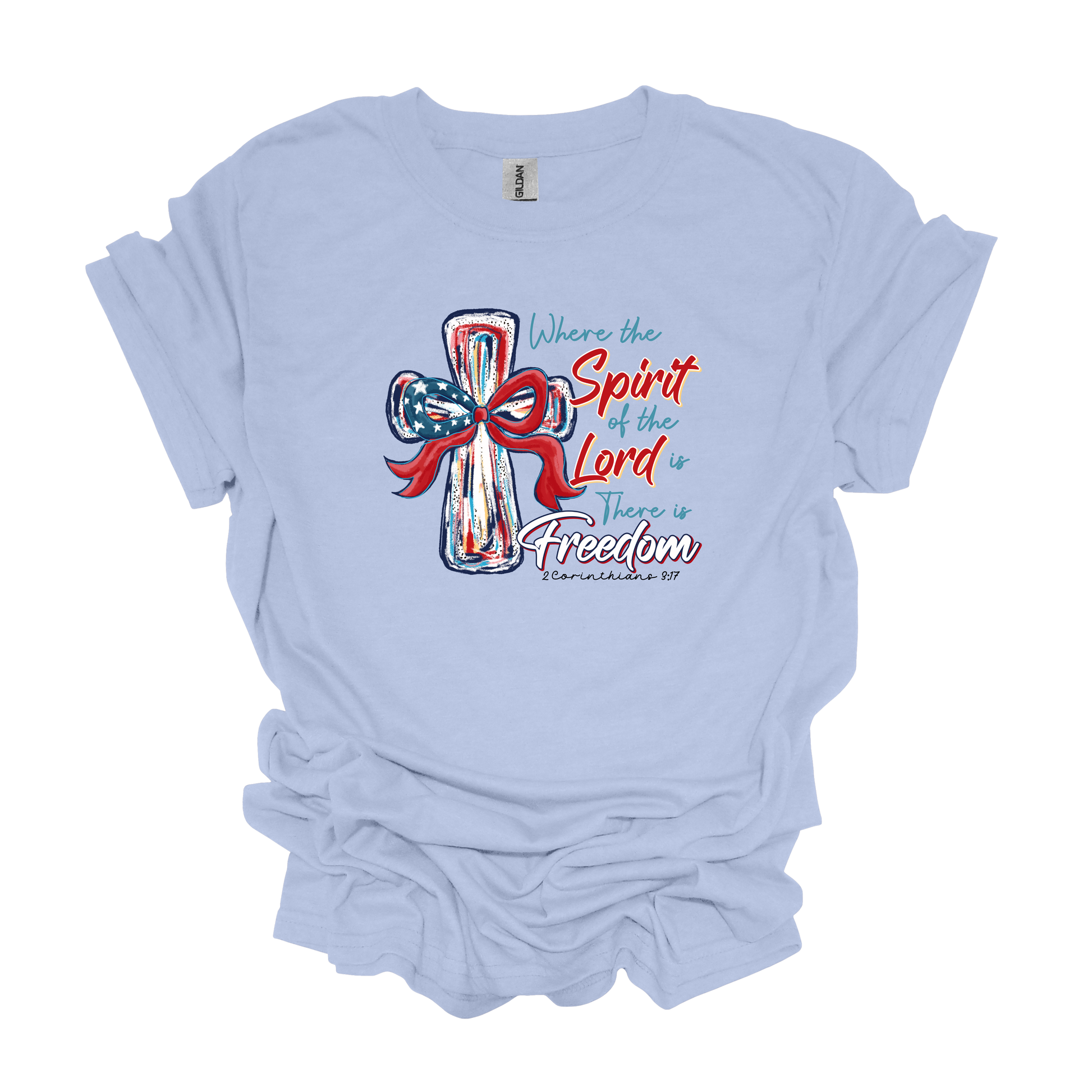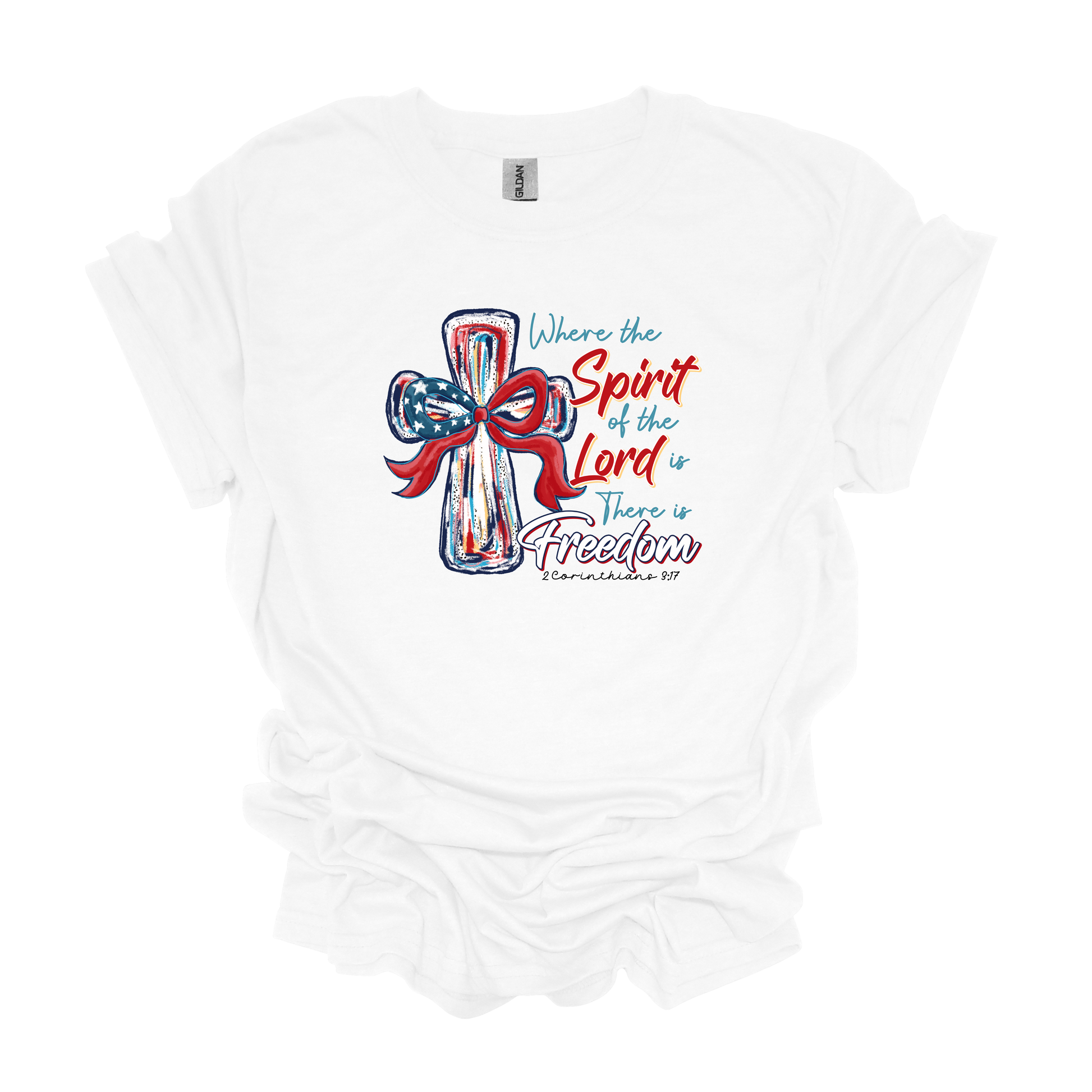 Gilden "Where the Spirit of the Lord is there is Freedom" cross t-shirt 4th of July Memorial Day Veterans Day