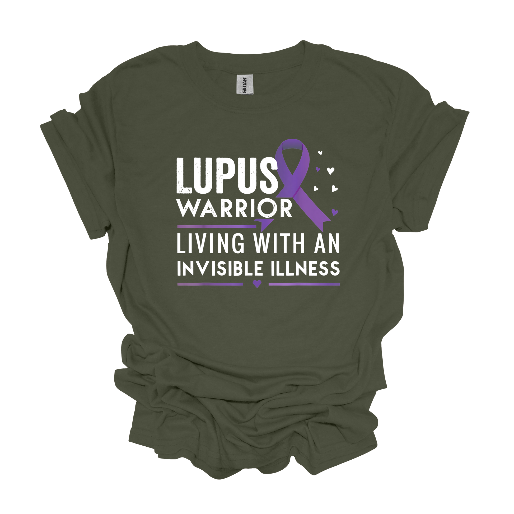 Showcase your strength with our Lupus Warrior Invisible Disease T-shirt. Crafted from preshrunk cotton with durable double-needle stitching at sleeves and hem, this classic fit tee offers both comfort and durability. Select from various colors and sizes to match your style. Features a tubular body design and custom labels that make this shirt as unique as your journey.
